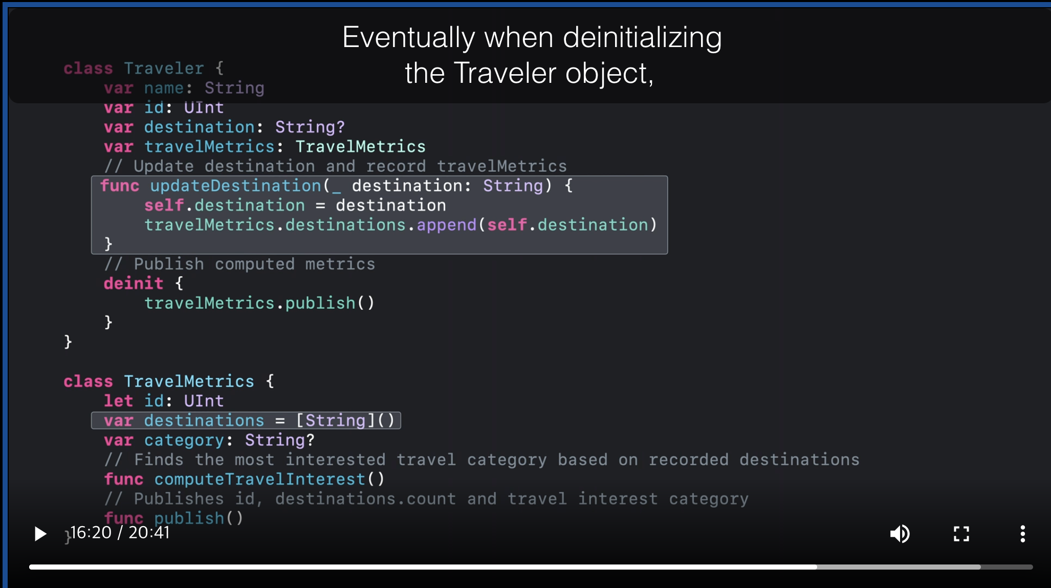 Traveler.updateDestination()์ ์คํ ํ dealloc๋๊ธฐ ์ deinit์ด ํธ์ถ๋๋๋ฐ
