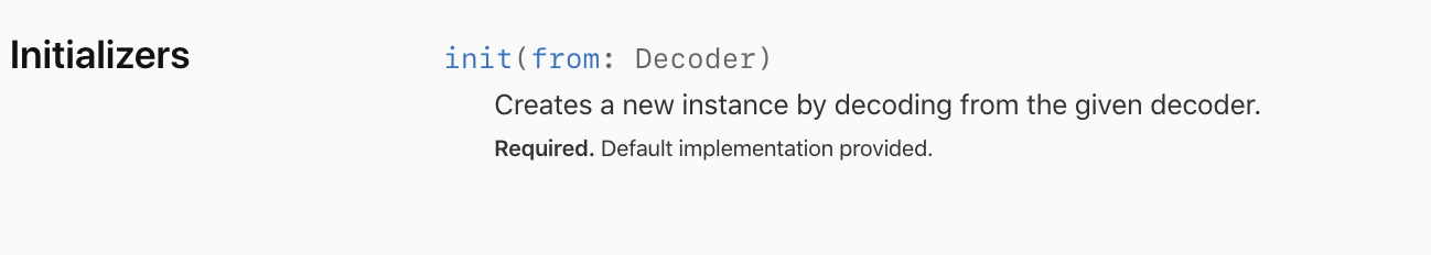 ์ฐธ๊ณ ๋ก Decodable์ ์ฑํํ๋ ๋ฐ์ดํฐ๋ initํจ์๋ฅผ ํ์์ ์ผ๋ก ๊ฐ์ ธ์ผ ํ๋ค